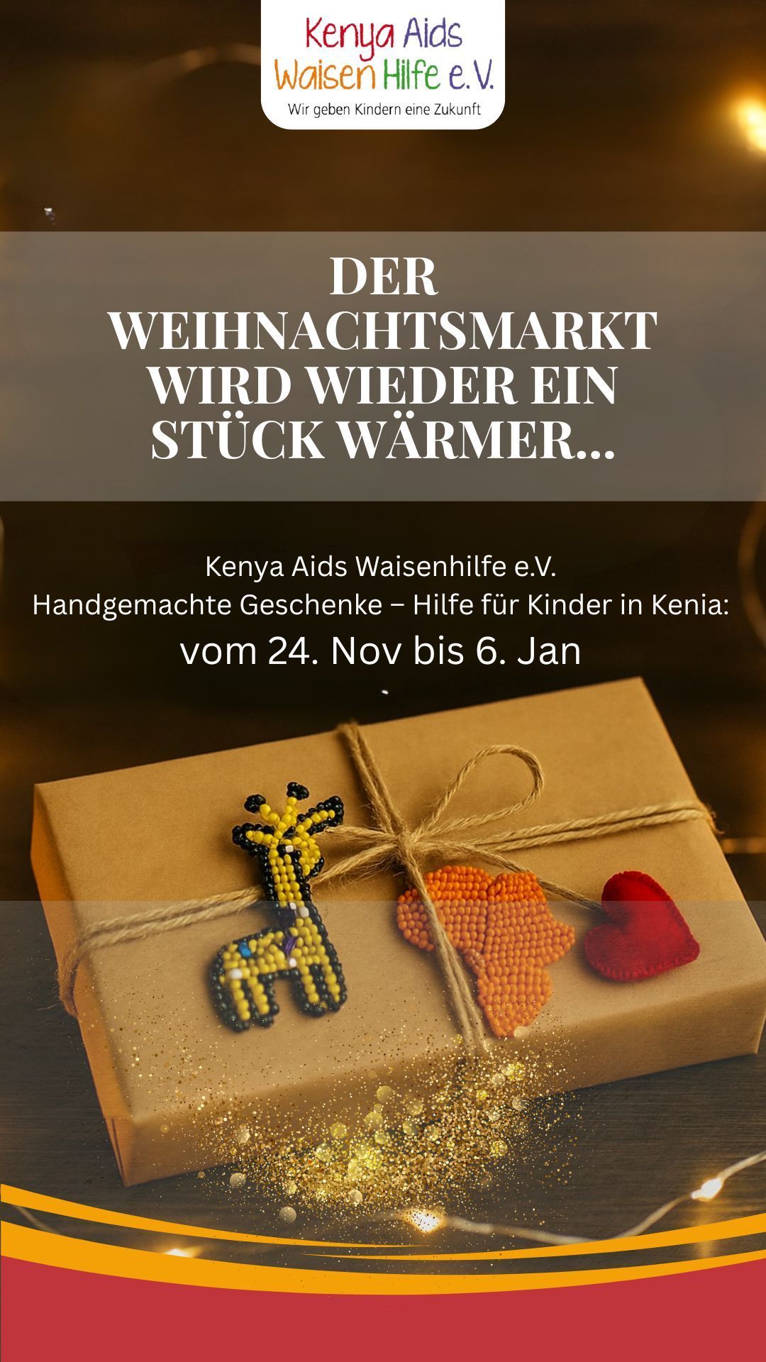 🎄 Der Weihnachtsmarkt rückt näher – und wir sind wieder dabei! Vom 24. November bis 6. Januar findet ihr den Stand der Kenya Aids Waisenhilfe e.V. auf dem Weihnachtsmarkt – mit handgemachten Geschenken, warmem Lächeln und einer Mission, die von Herzen kommt. 💛 Ob zum Stöbern, Schenken oder einfach zum Gespräch – jeder Besuch unterstützt unsere Arbeit für Kinder in Kenia. ✨ Wir kommen bald mit genaueren Infos – bleibt gespannt!